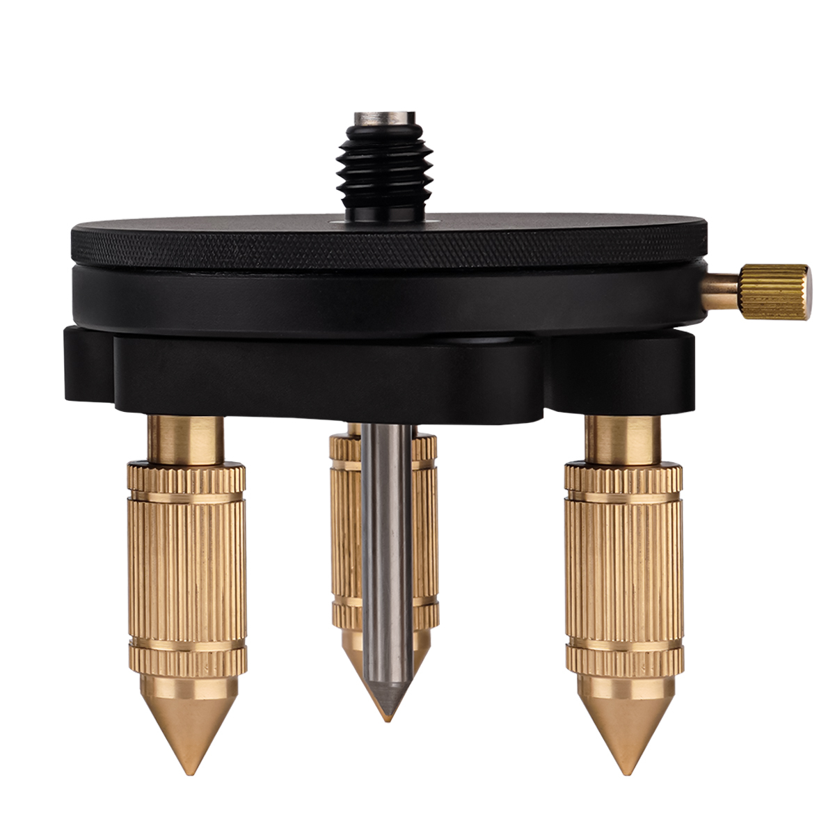 Устройство снабжено механическим центриром в виде стального износостойкого заостренного стержня, который обеспечивает простую установку оборудования над выбранной точкой. Темное небликующее покрытие корпуса адаптера позволяет комфортно работать с оптическими и лазерными приборами , без риска случайной засветки и ошибочного срабатывания. Сетчатое рифление на боковой поверхности упрощает поворот вращающейся части в нужном направлении. Выдвижные элементы подъемного механизма изготовлены из латуни и не подвержены ржавлению. Для удобства хранения и транспортирования изделие комплектуется сумкой-чехлом из текстильного материала.