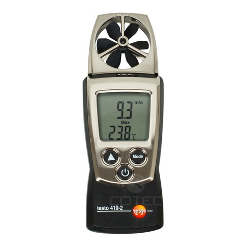 Основным преимуществом анемометра Testo 410-2 от модели Testo 410-1 (которая определяет скорость воздушных потоков и температурные показатели воздуха) является наличие функции измерения относительной влажности. Патентованный датчик влажности Testo имеет стабильные характеристики и не требует регулярной калибровки, и при этом обеспечивает измерения во всем диапазоне – от 0 до 100 % относительной влажности. Для определения вероятности выпадения конденсата при понижении температуры в помещении показатели влажности могут быть представлены в градусах точки росы (td), или же пересчитаны в температурный показатель шарика смоченного термометра (WB), "делая" анемометр Testo 410-2 аналогом психрометра.