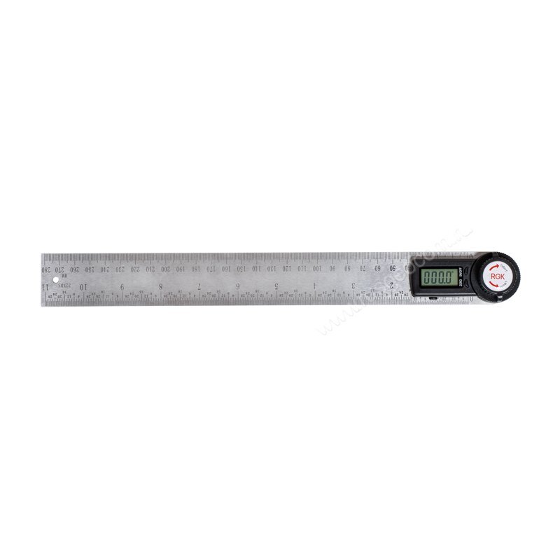Компактные размеры и возможность измерения углов до 360° позволяют использовать угломер при монтаже полок, окон и других бытовых работах. К тому же, угломер удобно хранить и транспортировать в ходе работ. Основные части прибора изготовлены из нержавеющей стали, благодаря чему обеспечивается долгий срок работы цифрового угломера RGK A-30. Угломер вы можете использовать и в качестве стандартной линейки, за счет конструкции из 2 раздвижных плоских частей со шкалами в см и дюймах. С помощью специальной регулирующей ручки вы можете зафиксировать измерения под любым углом, что позволяет использовать прибор качестве угольника, а также переносить результаты измерения в чертежи.
