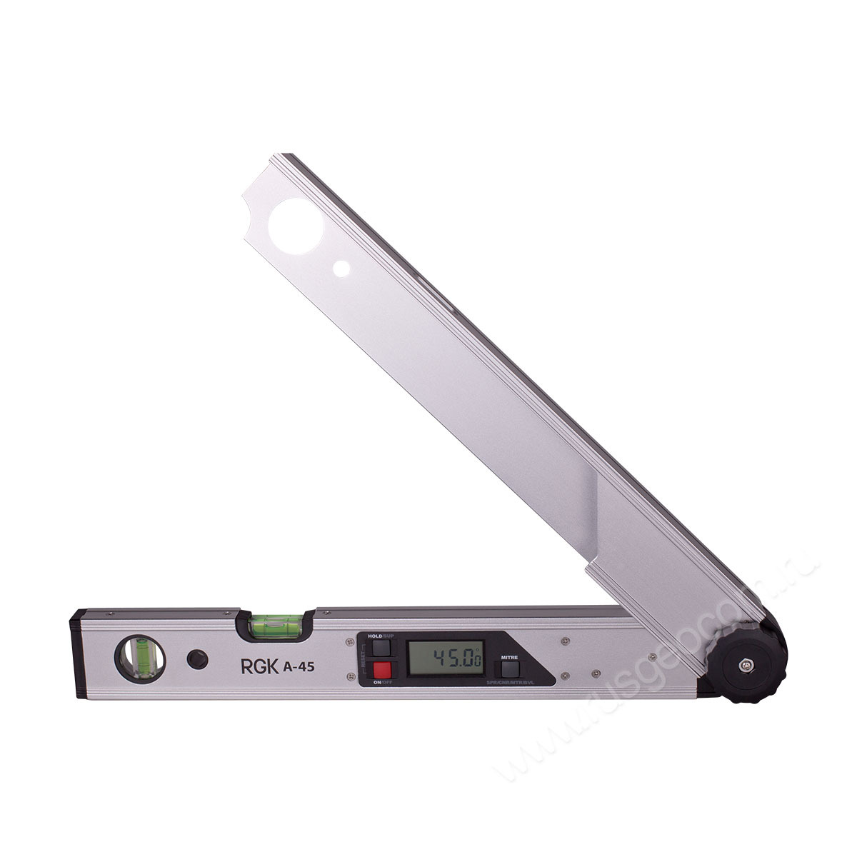 Цифровой угломер RGK A-45 позволяет точно определять углы наклона и скоса. Данный прибор широко применяется в плотницких, столярных и строительных работах, включая монтаж плинтусов и потолочных карнизов, крыш, стропил, перекрытий и т.п.