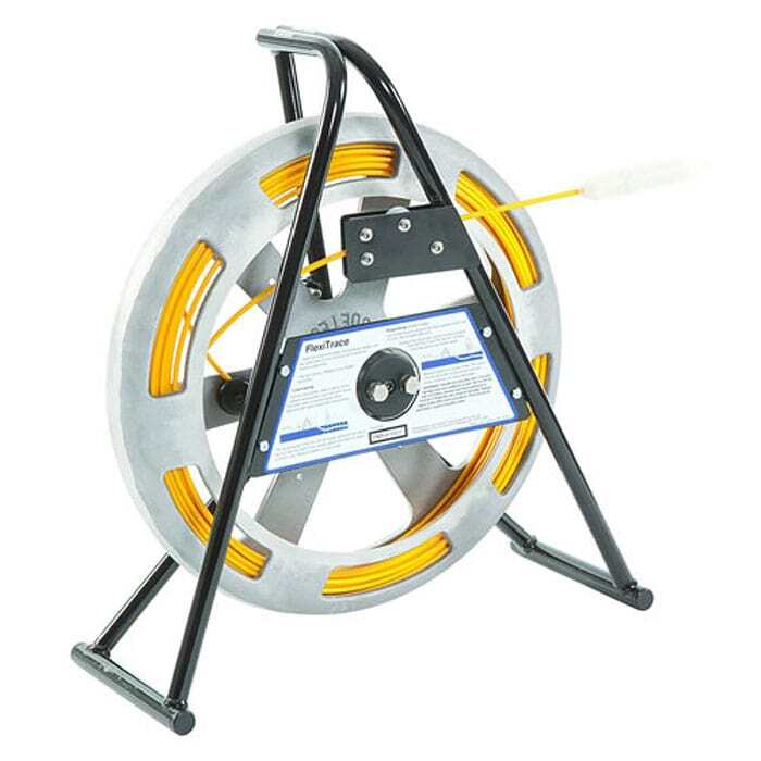 В катушке FlexiTrace – 50м проталкивающего стержня малого диаметра. Система запитывается от генератора Radiodetection и может применяться в трубах диаметром от 12мм. Используется с локатором Radiodetection для отслеживания и трассировки пластиковых труб малого диаметра. Обеспечивает поиск трассы на всем протяжении участка 50 или 80м.