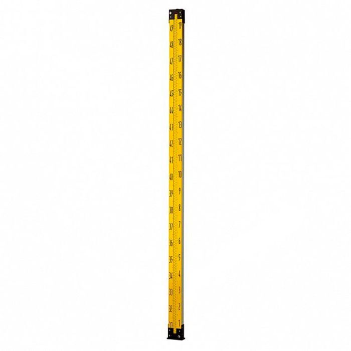 - Сторона рейки с нанесенным делением лакирована желтым цветом. Оцифровка защищена полиэстеровым покрытием толщиной 0,1 мм.