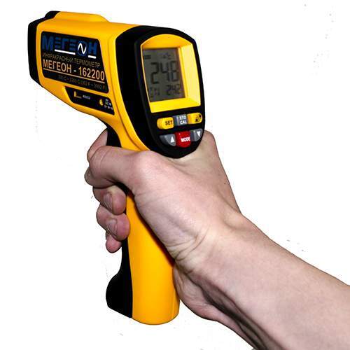 Пирометр МЕГЕОН 162200 – это лазерный бесконтактный термометр, с помощью которого можно измерять температуру поверхностей в диапазоне от 200°С до 2200°С. Диапазон измерений настраивается автоматически во время замера, а погрешность при измерениях не превышает 2-4°С.