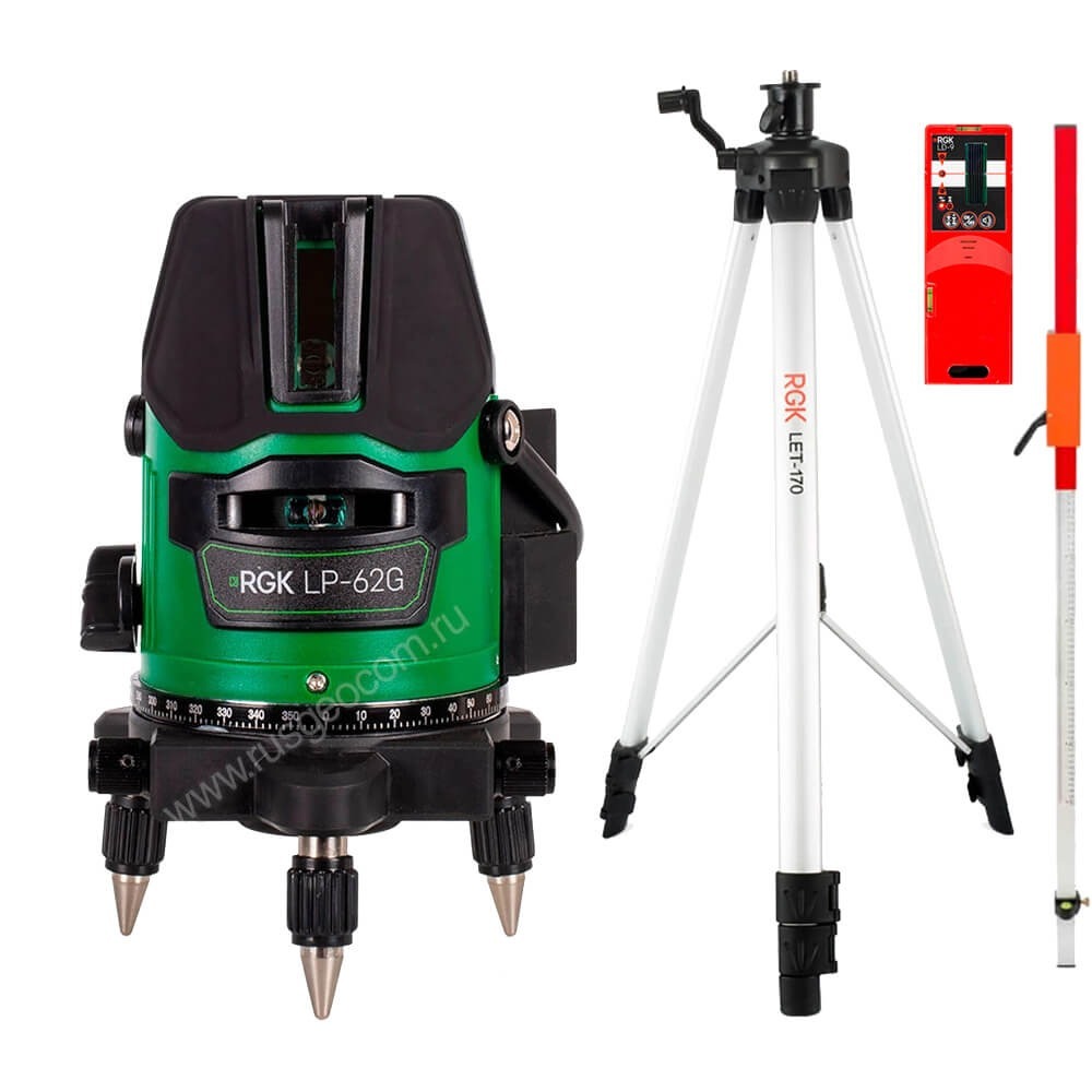 Купить лазерный уровень RGK LP-62G с калибровкой + штатив RGK LET-170, приемник RGK LD-9, рейка RGK LR-2 и получить консультацию специалиста вы сможете на сайте нашего интернет-магазина.