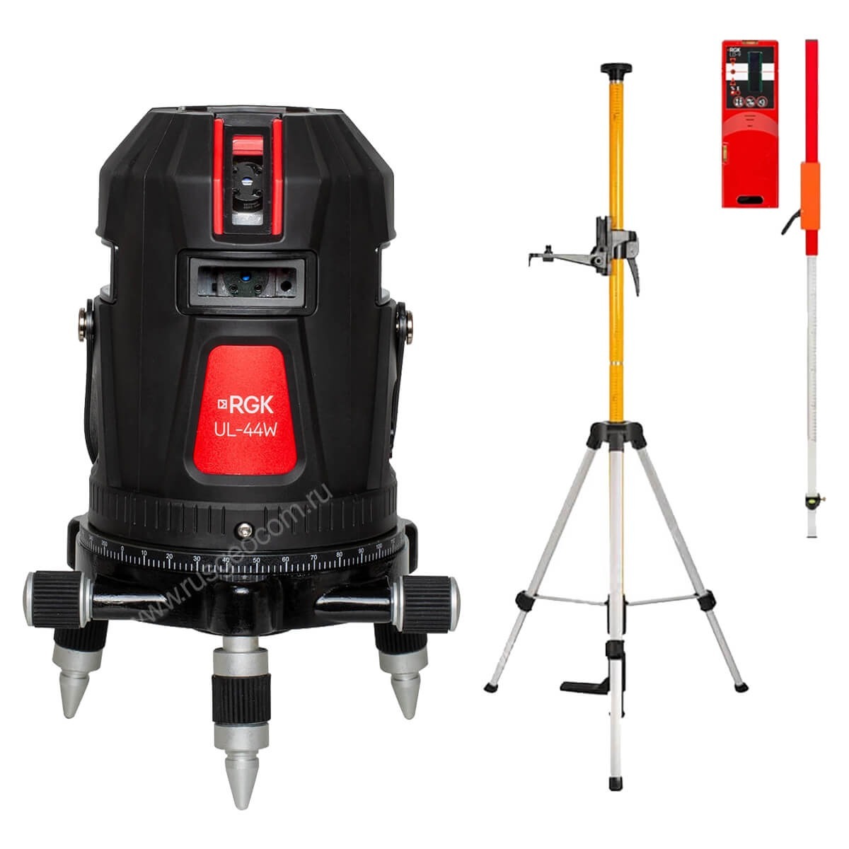 Купить лазерный уровень RGK UL-44W Black с калибровкой + штанга-упор RGK CG-2, приемник RGK LD-9, рейка RGK LR-2