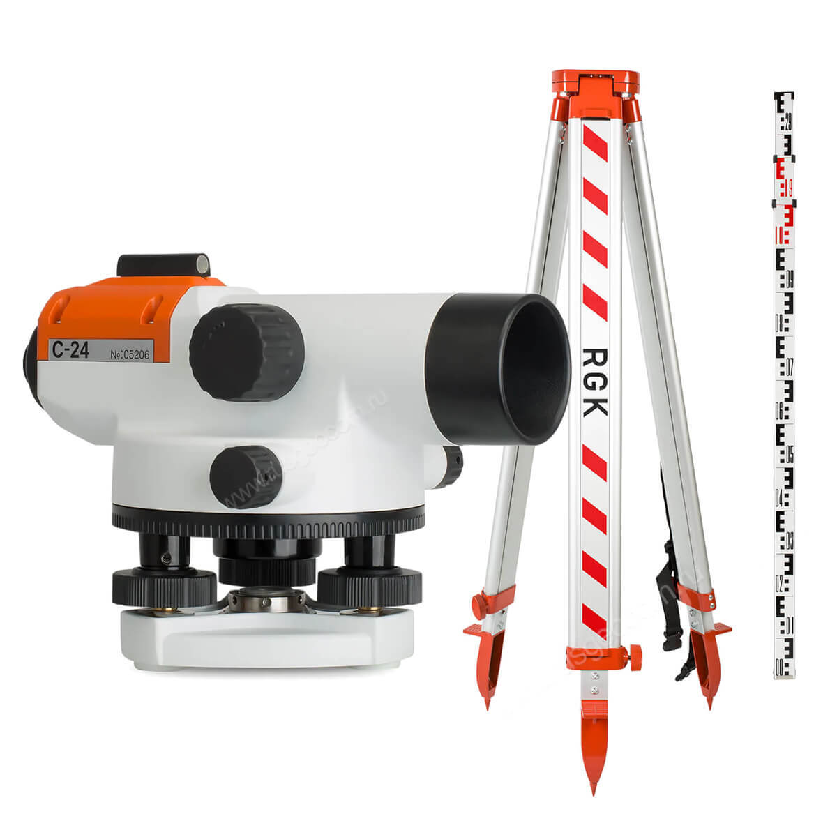Купить комплект: оптический нивелир RGK C-24 + штатив + рейка