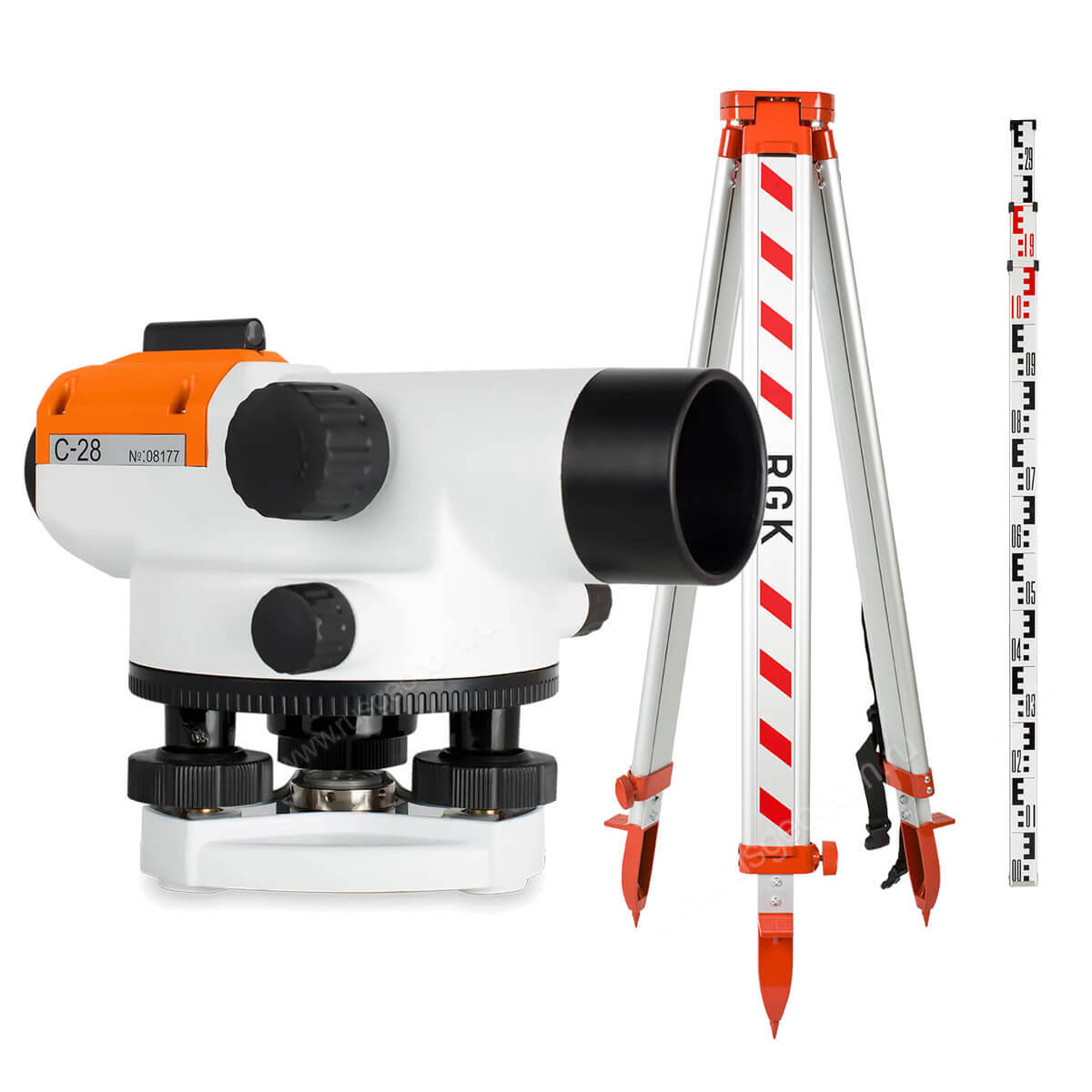 Комплект оптический нивелир RGK C-28 с поверкой + штатив S6-N + рейка AMO S4
