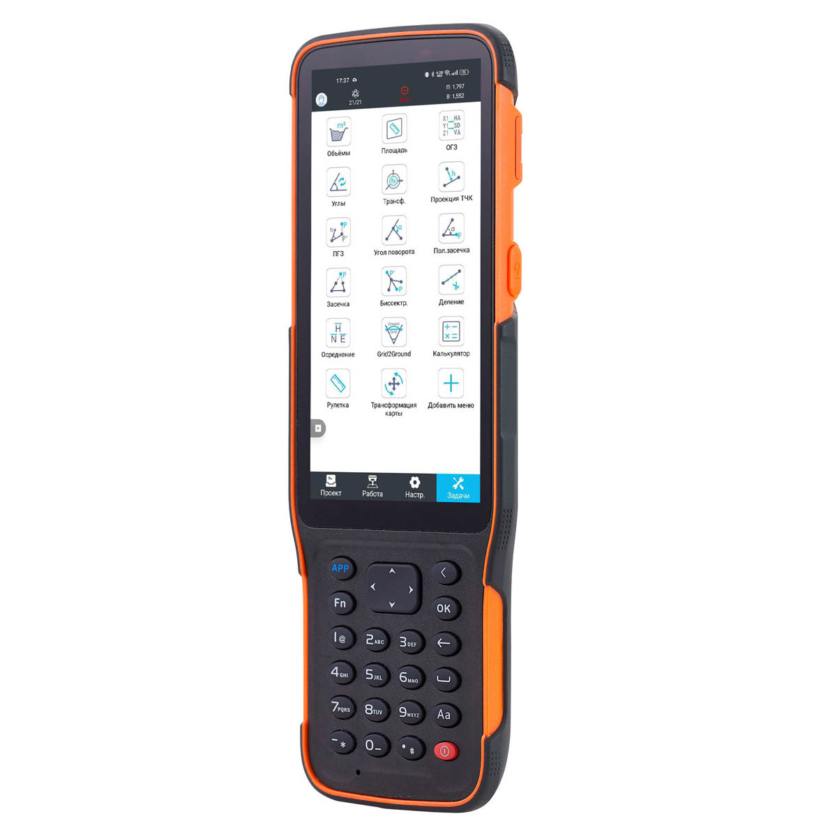 Контроллер комплекта PrinCe i50 + PrinCe HCE 600 функционирует под управлением операционной системы Android 10 и оснащён мощным 8-ядерным процессором Helio MTK 6762 и памятью типа LPDDR4, что обеспечивает высокую скорость и эффективность работы при низком потреблении энергии. Контроллер дополнительно оборудован встроенным компасом и алгоритмом гироскопического синтеза, компенсирующим ошибки, вызванные влиянием магнитных полей. Устройство имеет модуль 4G, позволяющий осуществлять доступ в интернет, передачу данных в удалённый офис, загрузку картографических материалов и другие задачи. Удобный эргономичный дизайн делает использование контроллера комфортным даже одной рукой. Кнопка быстрого доступа позволяет быстро вводить данные и проводить одностадийные измерения. Дисплей размером 5,5 дюймов с максимальной яркостью до 500 нит отличается высокой четкостью изображения и устойчивостью к повреждениям благодаря стеклу Asahi DragonTrail.