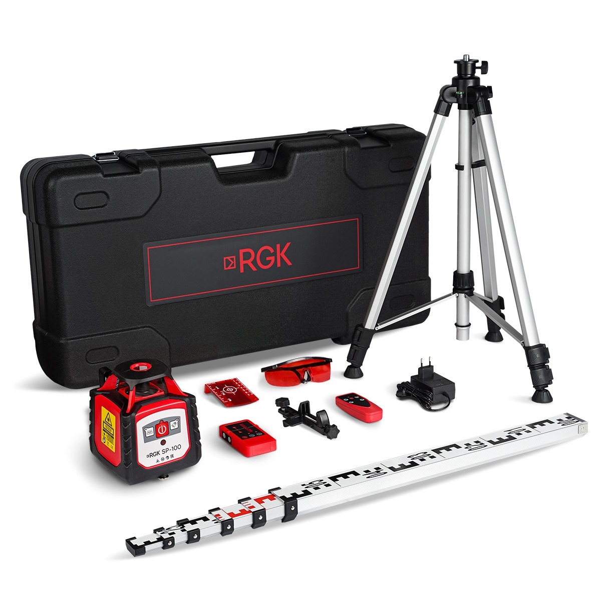 Купить комплект ротационного нивелира с элевационным штативом RGK SP-100 COMBO с калибровкой