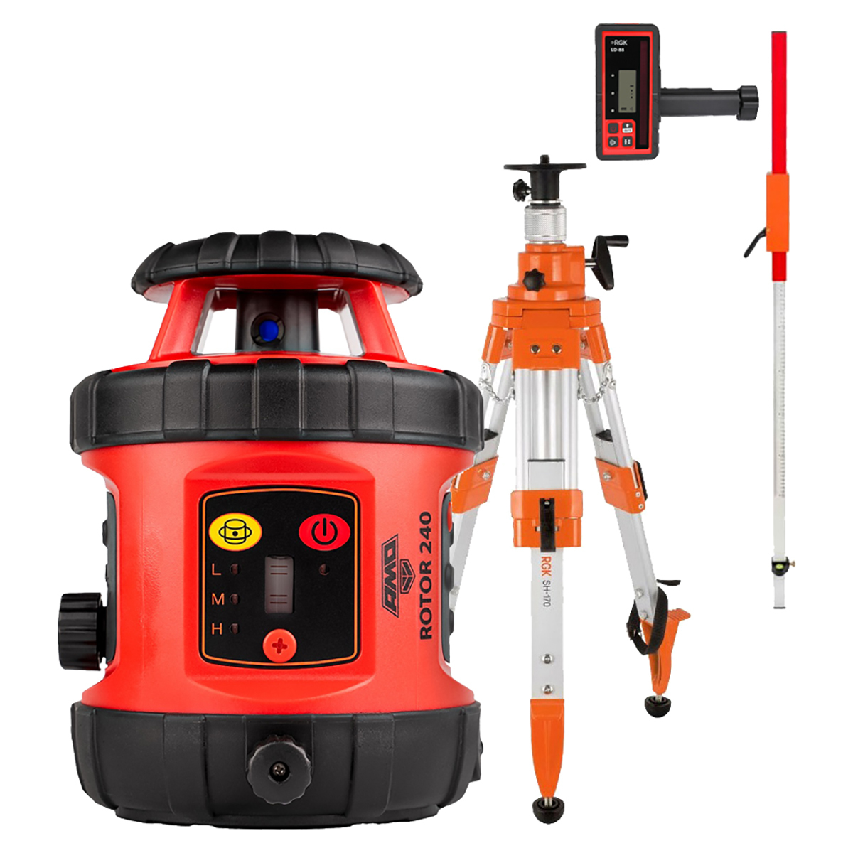 Купить комплект: ротационный нивелир AMO ROTOR 240 + штатив RGK SH-170, рейка RGK LR-2, приемник RGK LD-88