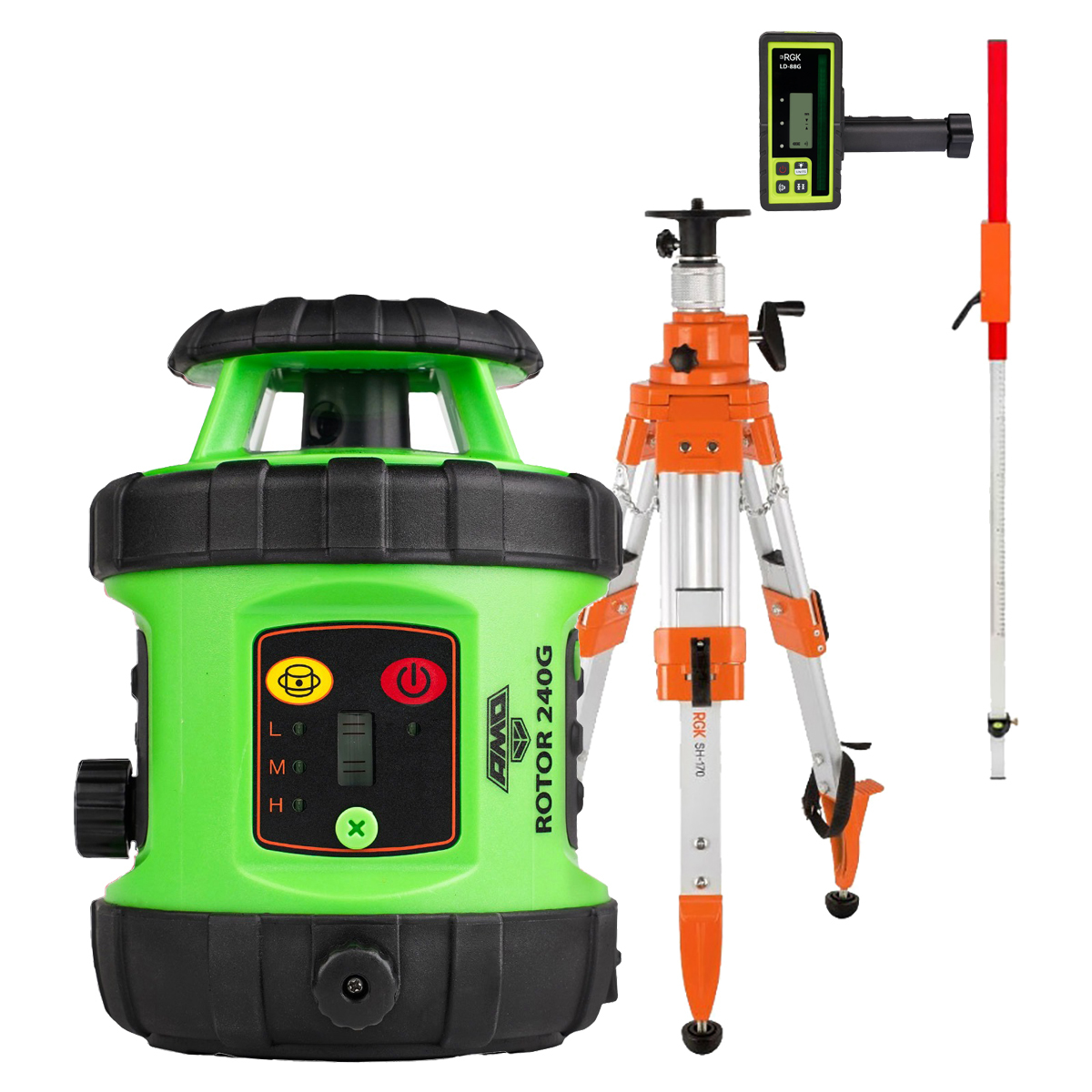 Купить комплект: ротационный нивелир AMO ROTOR 240G + штатив RGK SH-170, рейка RGK LR-2, приемник RGK LD-88G