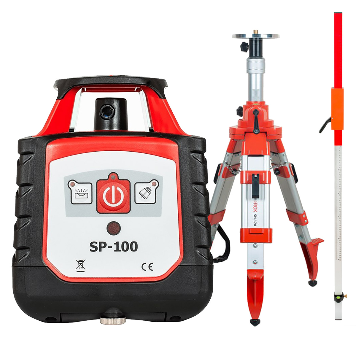 Купить ротационный нивелир RGK SP-100 + штатив RGK SH-170, рейка RGK LR-2