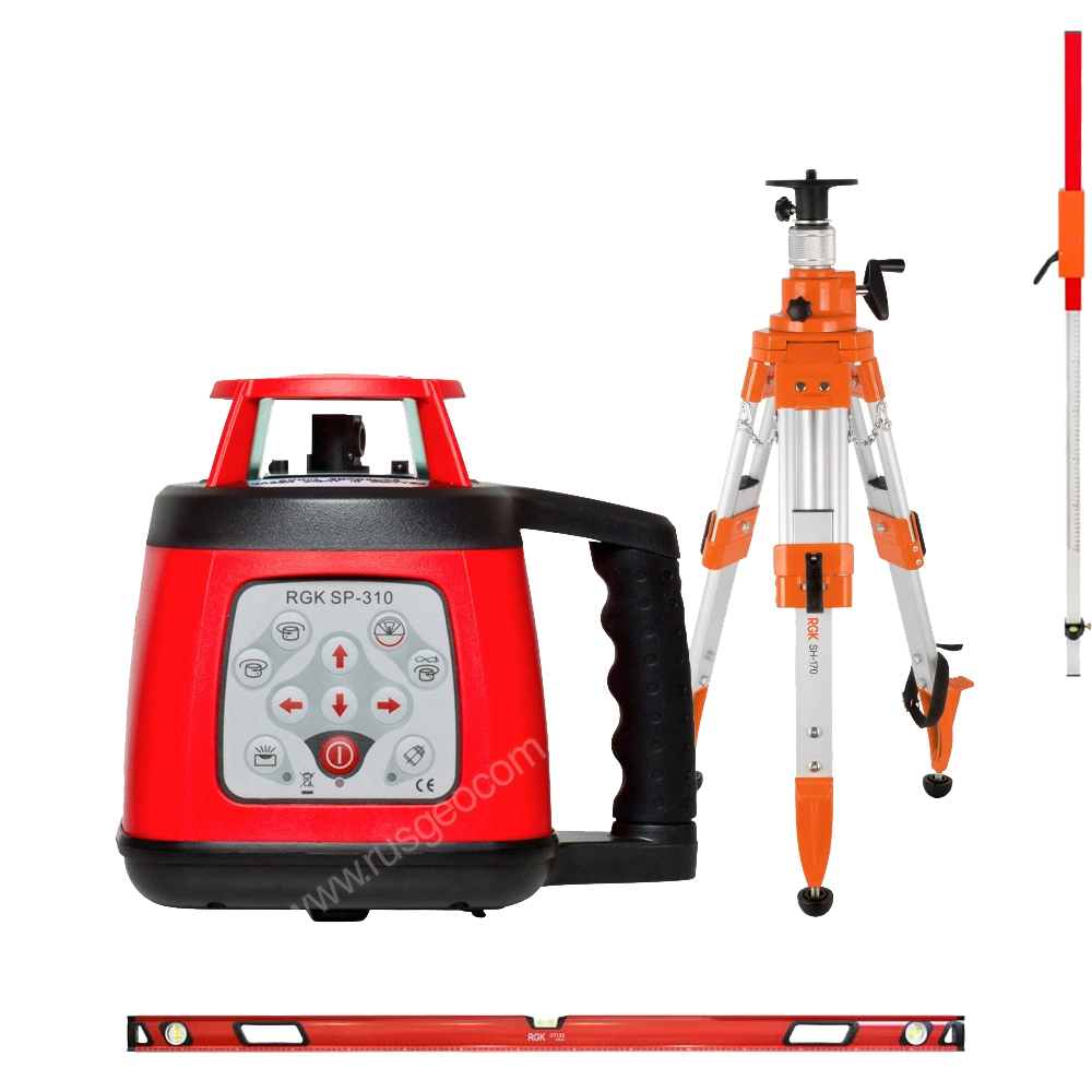 Купить ротационный нивелир RGK SP-310 + штатив RGK SH-300, рейка RGK LR-2, уровень RGK U6100