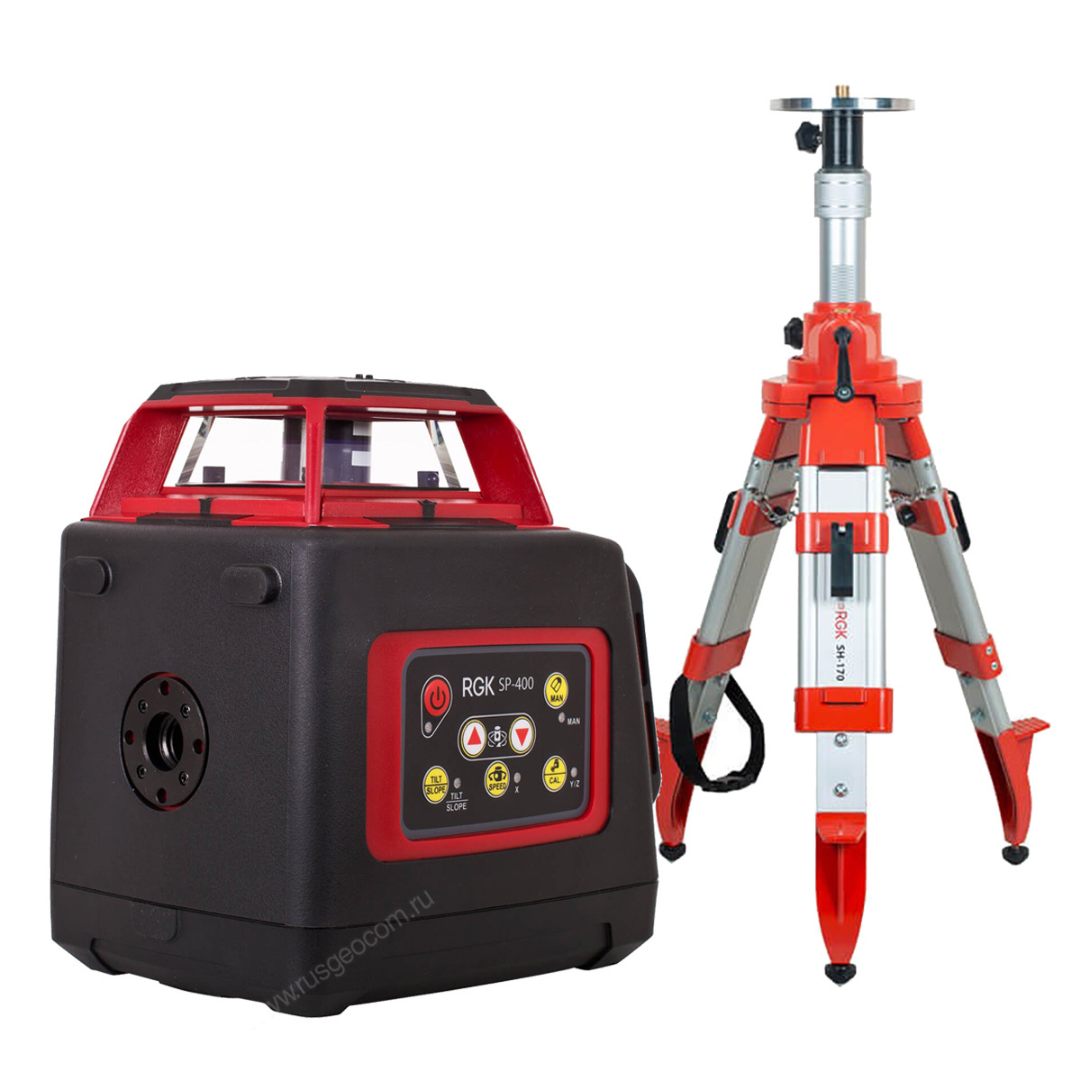 Купить ротационный лазерный нивелир RGK SP-400 с калибровкой + элевационный штатив RGK SH-170