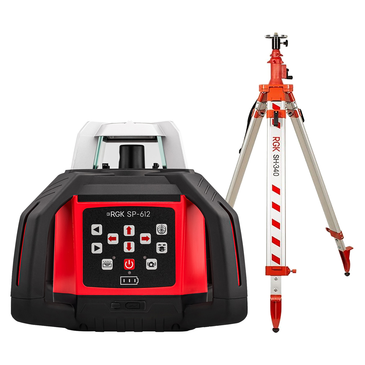 Купить ротационный лазерный нивелир RGK SP-612 с калибровкой + элевационный штатив RGK SH-340