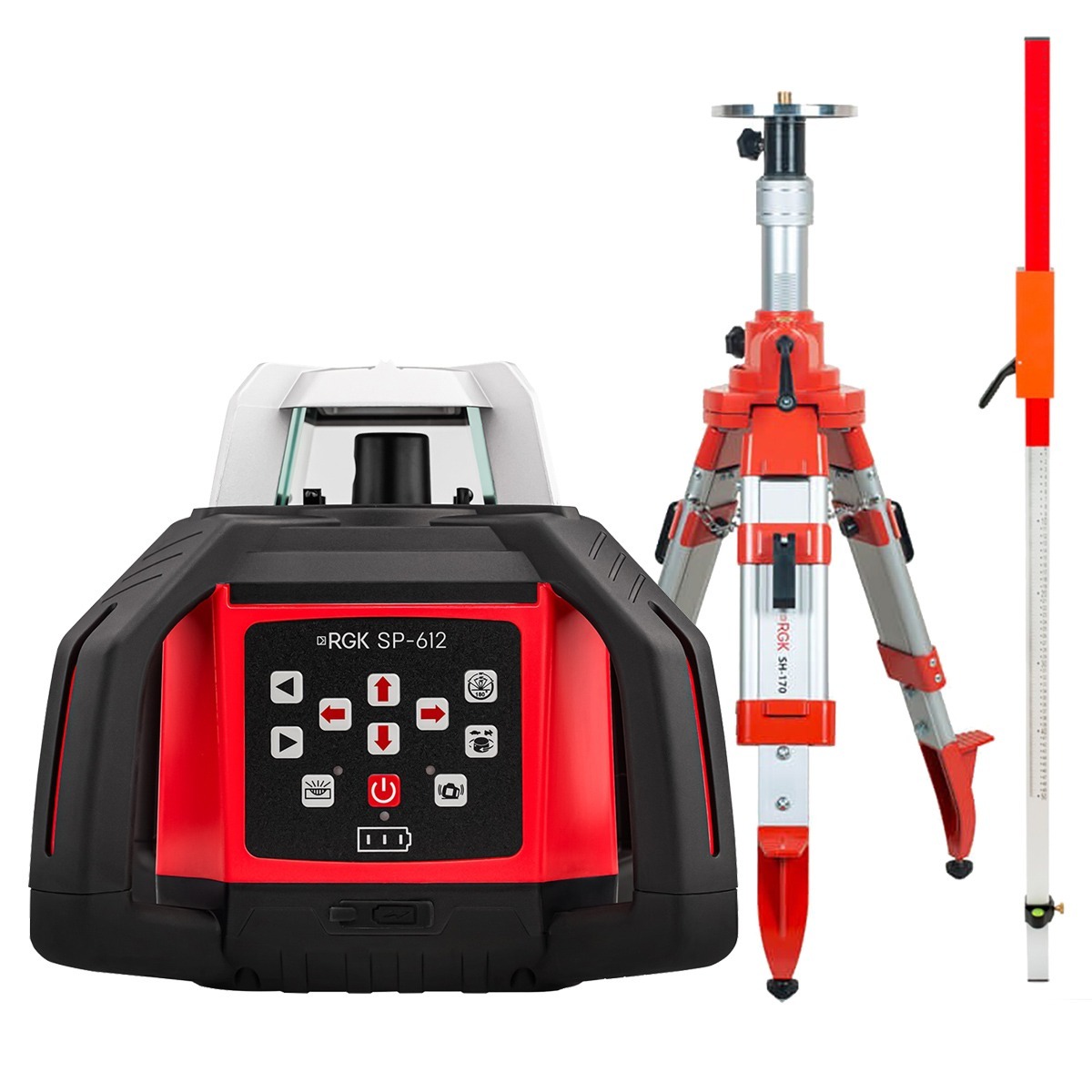 Купить ротационный лазерный нивелир RGK SP-612 с калибровкой + штатив RGK SH-170, рейка RGK LR-2