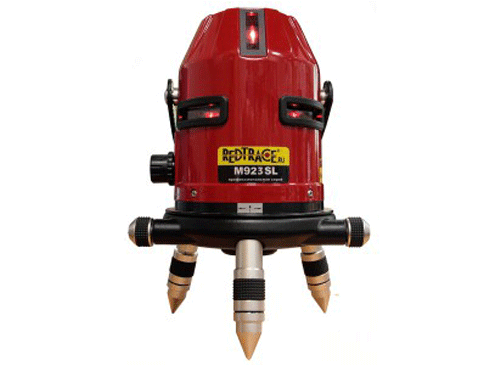 Лазерный нивелир M912SL является так же построителем плоскостей, способным проецировать две вертикальные плоскости, сходящиеся в точке зенита под прямым углом, и одной горизонтальной лазерной плоскости. Горизонтальная плоскость пересекается с вертикальными под углом в 90°. Наличие подвесного компенсатора дает возможность прибору осуществлять самовыравнивание при потере им рабочего положения на угол в пределах ±5°, а встроенный замок компенсатора позволяет избегнуть случайных механических повреждений этого узла прибора при его транспортировке. На приборе установлен лазерный отвес, который облегчает привязку к определенной точке при проведении разметочных работ, а винт плавной наводки обеспечит наиболее точное положение проецируемых плоскостей относительно объекта разметки.