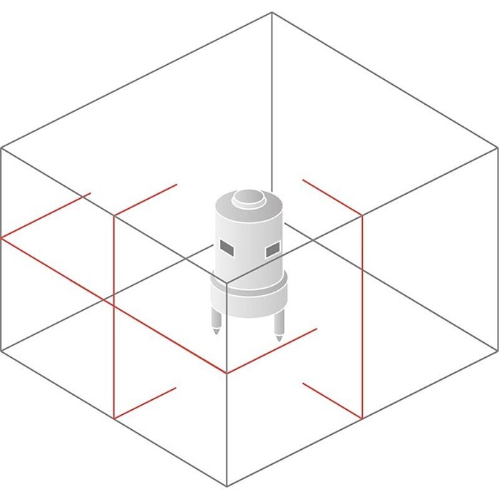Лазерный уровень geo-Fennel FL 40-3Liner HP способен проецировать три лазерные линии. Две вертикальные плоскости располагаются перпендикулярно друг к другу. Третья горизонтальная линия пересекает одну из них, формируя четкий лазерный крест.