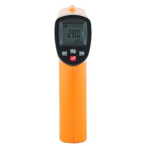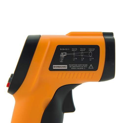 Управление пирометром производится с помощью механических кнопок, размещенных на торце устройства над удобной рукояткой пистолетного типа. Благодаря этому переключать режимы работы и выполнять настройку параметров можно одной рукой. Для удобного позиционирования пирометра имеется лазерный целеуказатель.
