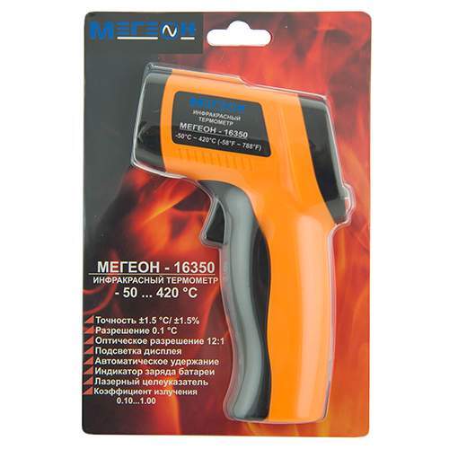 Пирометр МЕГЕОН 16350 – небольшой прибор для бесконтактного измерения температуры. Он позволяет определить уровень нагрева или охлаждения поверхности без необходимости касания ее датчиком термометра. Используется для выполнения измерений опасных и горячих объектов, размещенных в труднодоступных местах.