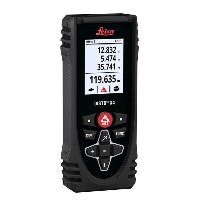 Профессиональный лазерный дальномер Leica Disto X4 представляет собой высокоточную измерительную технику, предназначенную как для определения расстояний, так и для замеров углов наклона. Дополнительно доступна опция автоматического создания чертежей помещений через использование специального оснащения и специализированного ПО. Устройство оборудовано камерой со встроенным прицелом, что облегчает точное наведение на удаленные цели, особенно когда целевая отметка мала либо плохо различима из-за яркости освещения.
