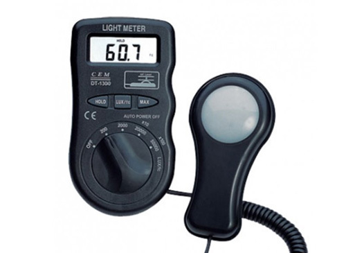 Люксметр CEM DT-1300 – прибор, с помощью которого можно определить уровень освещения рабочего места или иного помещения. Устройство оснащено выносным сенсором, фиксирующим интенсивность светового потока. Данные выводятся на дисплей основного блока в одной из двух единиц измерения – Lux или FC.