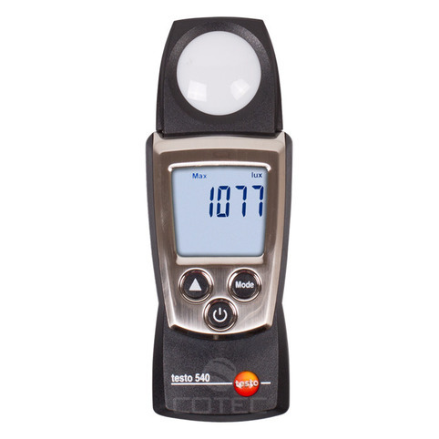 Люксметр Testo 540 отличается предельным минимализмом и простотой, благодаря чему обеспечивается высокая надежность прибора. Данная модель имеет всего три функциональных кнопки и по размеру не сильно отличается от мобильного телефона. Не смотря на высокую компактность и малый вес (менее 100 г), Testo 540 прекрасно справляется со своей основной функцией – измерять уровень освещенности в помещениях. При этом прибор не только фиксирует текущее значение измеряемой величины, но и запоминает максимальные и минимальные показатели (с момента перезагрузки или последнего выключения).