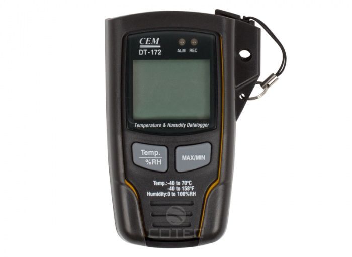 CEM DT-172 - это портативный логгер данных, который позволяет измерять и регистрировать температуру и влажность воздуха. DT-172 имеет широкий диапазон определяемой температуры и работает в пределах от -40 до +70 °С.