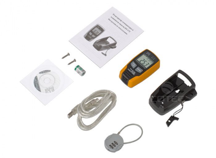 Стандартная комплектация: прибор, диск с ПО, защитный чехол, кодовый замок, USB-кабель, элемент питания.