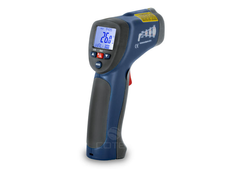 Пирометр CEM DT-8833 выполнен в виде "пистолета" с удобной рукояткой, оснащен лазерным указателем цели и широким жидкокристаллическим экраном с подсветкой. Кнопочная панель позволяет изменять режимы измерения, включать и выключать подсветку, удерживать показания на экране. Благодаря скорости измерения - не более 1 секунды на замер - пирометр CEM DT 8833 успешно используется в технологических процессах, где нужна высокая производительность или динамический контроль.