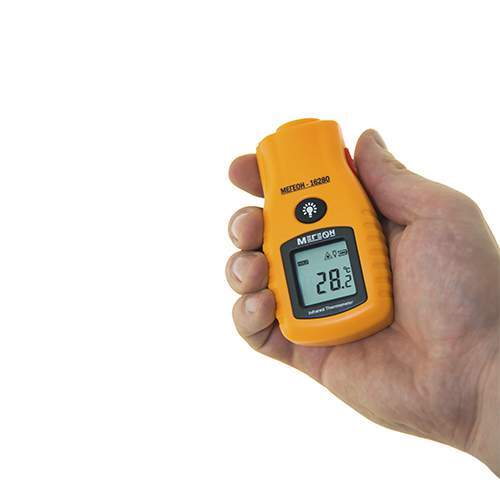 Компактный и функциональный пирометр МЕГЕОН 16280 незаменим при локальном измерении сравнительно небольших температур в диапазоне от -32 до +280 °С (-32 … +536 по Фаренгейту). Прибор используется преимущественно в бытовых условиях. Точность стоставляет ±1,5 градуса Цельсия при температуре окружающей среды от 0 до 40 °С.