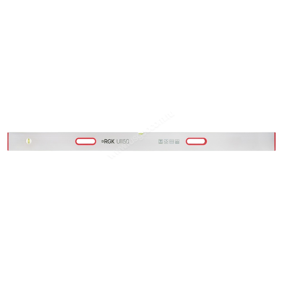 Пузырьковый уровень RGK изготовлен из алюминиевого сплава в виде прямоугольного профиля толщиной 1 мм. Корпус инструмента отличается высокой жесткостью. Для удобного удержания предусмотрены две врезные ручки.