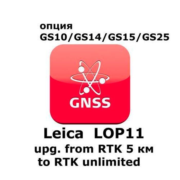Опция LEICA LOP11 (GS10/GS15; с RTK до 5км до RTK) – опция увеличения в приемнике расстояния приема RTK сообщений с 5 км до неограниченного расстояния. Данная лицензия может быть заказана только для GNSS приемников GS10/GS15/GS25. Купить Leica LOP11.