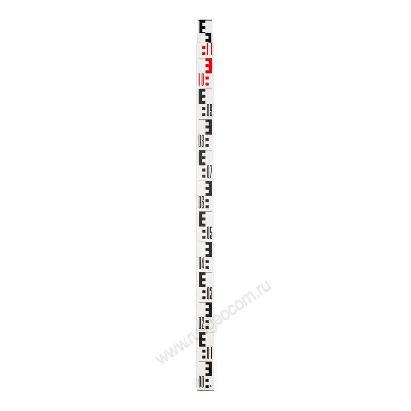 Длина нивелирной рейки в сложенном состоянии составляет 1.1 м, благодаря чему инструмент легко транспортировать в машине и переносить к месту проведения исследований в удобном комплектном чехле с плечевым ремнем. Телескопическая конструкция раздвигается до 3 м; такой длины достаточно для решения большинства измерительных задач. Материал корпуса - прочный и легкий композитный стеклопластик, который устойчив к коррозии, окислению и различным атмосферным воздействиям.