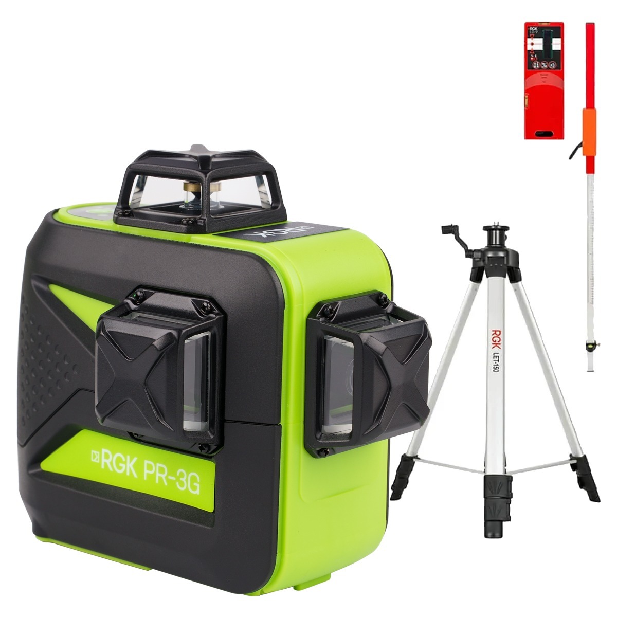 Купить лазерный уровень RGK PR-3G с калибровкой + штатив RGK LET-150, приемник RGK LD-9, рейка RGK LR-2