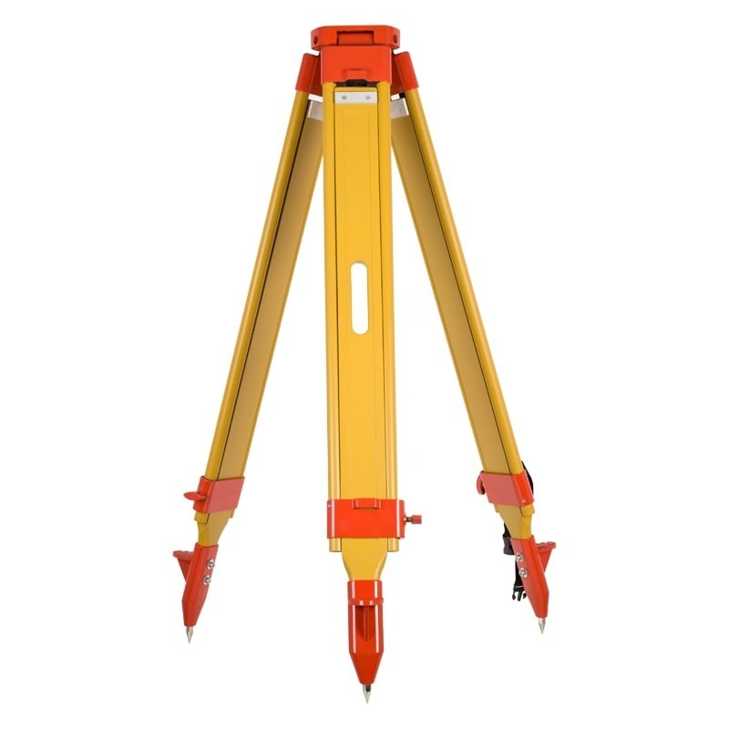 Телескопические ножки фиксируются в необходимом положении надежным винтовым механизмом. Заостренные наконечники стоек и прочные упоры помогают крепко установить геодезический штатив в рыхлый грунт.