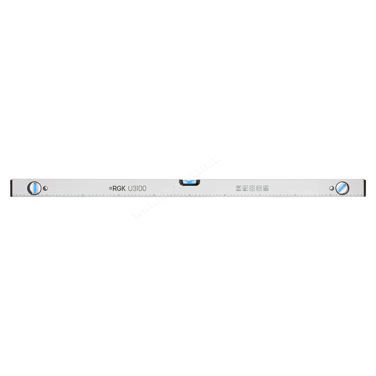 Миллиметровая шкала (линейка) позволяет определять размеры и выполнять мелкую разметку, а гладкая поверхность рабочих граней строительного уровня RGK U3100 дает облегчает поиск неровностей на контролируемых плоскостях.