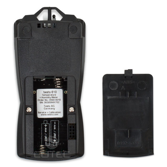 Корпус Testo 610 выполнен из ударопрочных материалов, абсолютно безопасных для пользователя. Корпус аппарата также имеет влагостойкое покрытие и специальную защитную крышку. Термогигрометр Testo 610 работает от 2-х микробатарей АА, рассчитанных на 200 часов. Комплект поставки включает в себя также специальный пылезащитный чехол.