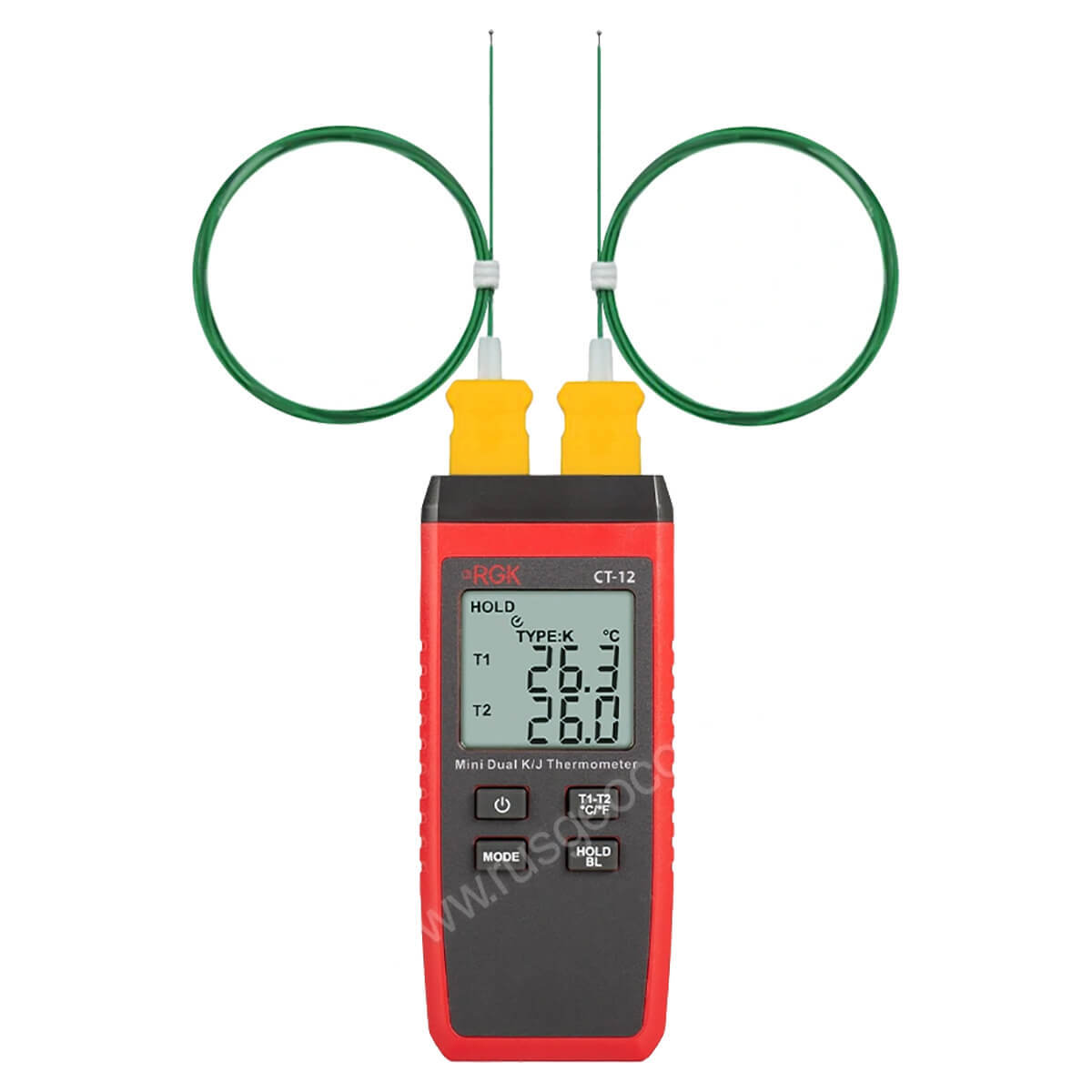 Контактный термометр RGK CT-12 - это надежный и точный прибор для измерения температуры в диапазоне от - 40 °С до + 260 °С с комплектной термопарой. Погрешность при этом составляет не более ± 1,5 °C. Главное преимущество этой модели - 2 гнезда для подключения выносных датчиков с функцией определения разности между каналами. Благодаря такой конфигурации можно быстро и удобно решать множество измерительных задач, связанных с диагностикой и настройкой электроники, промышленного оборудования, систем отопления и вентиляции т.п.
