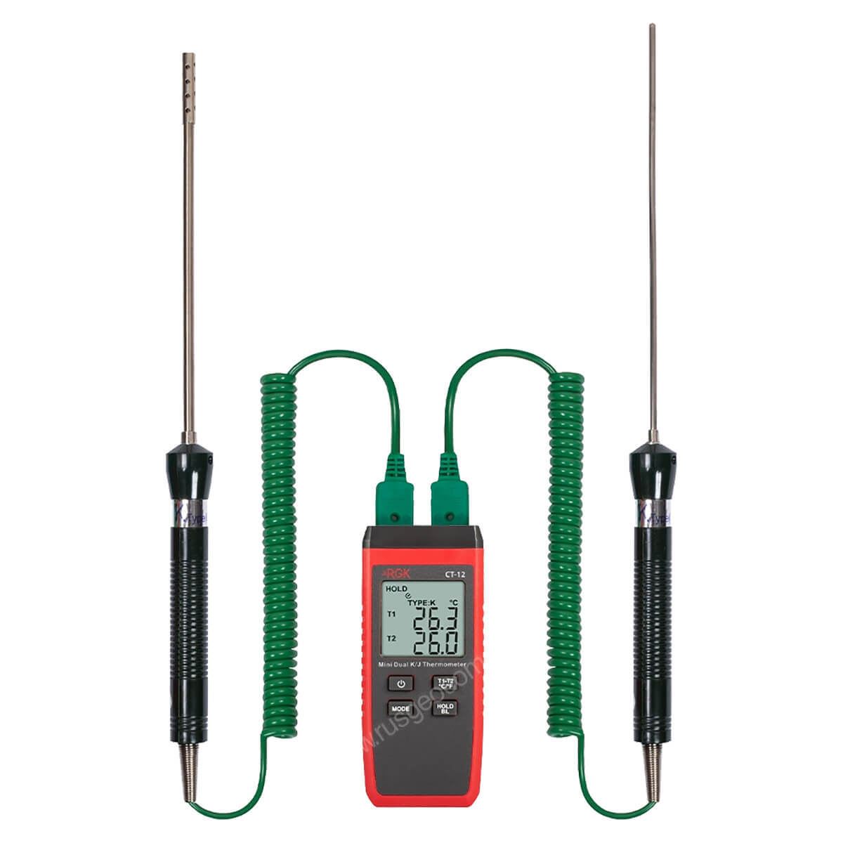 За счет небольшого веса компактный двухканальный цифровой термометр RGK CT-12 с зондом температуры воздуха TR-10A и погружным зондом температуры TR-10W с поверкой удобен для проведения длительных инспекций в полевых условиях, легко помещается в карман одежды или сумки. С большого дисплея показания считываются легко и без путаницы между каналами. Корпус прибора выполнен из прочного пластика, снабжен рельефными участками для надежного захвата и выдерживает падение с метровой высоты.