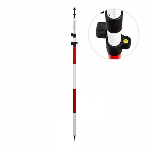 Сверхлёгкая (всего 1,13 кг) телескопическая веха 5541-20 предназначена для установки отражательных систем или ГНСС приемников. Веха изготовлена из непроводящего ток фибергласса. Для установки в вертикальное положение веха снабжена 40’ уровнем, совмещенным с закрепительным механизмом. Закрепительный TLV механизм позволяет надежно фиксировать секции. Верхняя секция имеет установочную резьбу 5/8x11. Сантиметровая градуировка позволяет точно устанавливать веху на высоту до 3,50 метра. В нижней части вехи расположен наконечник, который при необходимости может быть закрыт специальной насадкой для установки на нетвердое основание.