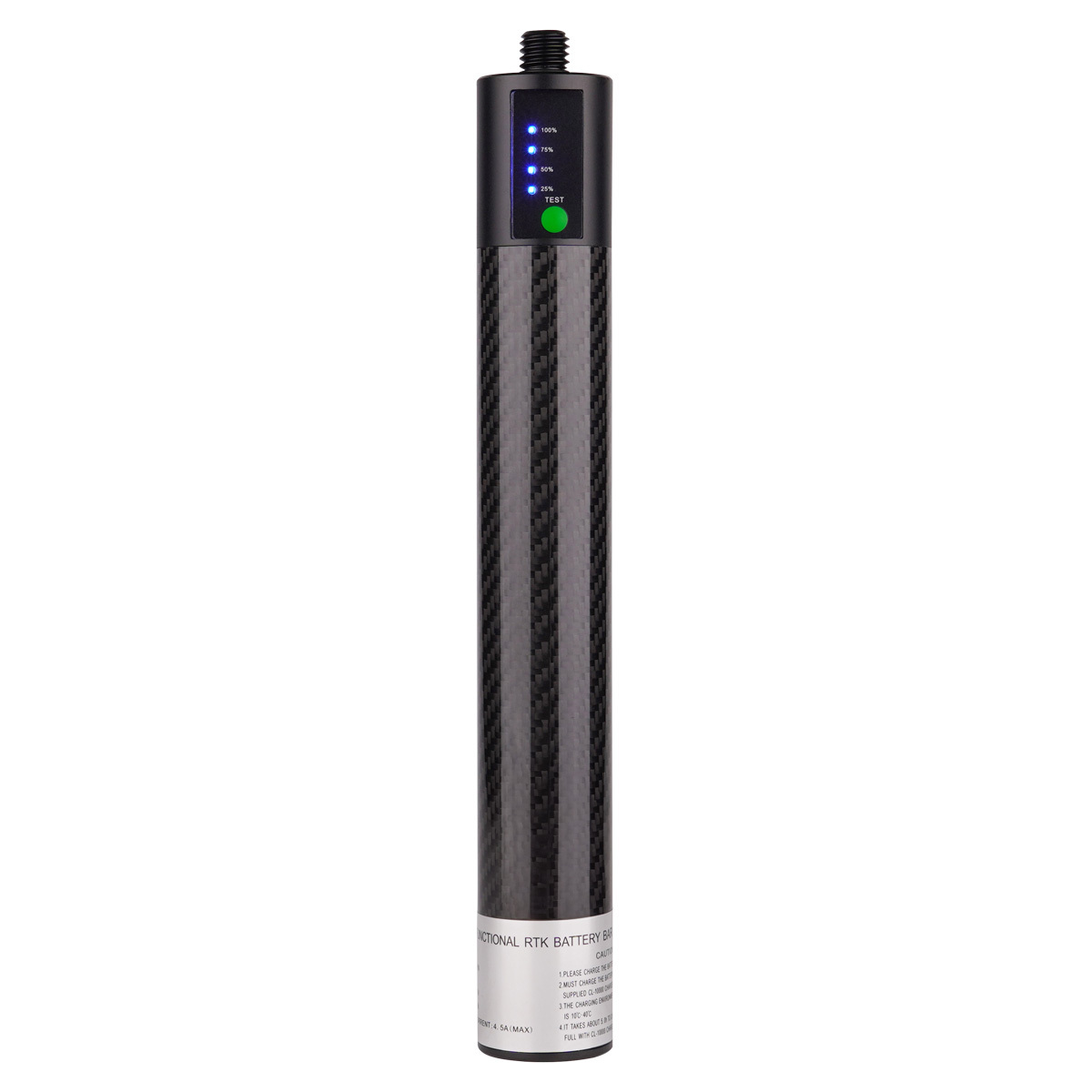 Внешнее питание для ГНСС приемника RGK BL10000 представляет собой компактный дополнительный источник энергии, который позволяет повысить продолжительность измерений, продлевая время непрерывной работы геодезического инструмента на 10-12 ч. Литий-ионная аккумуляторная батарея емкостью 10000 мАч с рабочим напряжением 12 В помещена в тонкий цилиндрический корпус в карбоновой оболочке, со стандартным винтовым креплением 5/8" x 11 в верхней части и отверстием в нижней – под аналогичный крепеж. За счет соосного размещения изделие не влияет на балансировку смонтированного на нем прибора, и может использоваться с соответствующим переходником, как адаптер трегера для установки на штативе, либо в качестве верхней секции вехи.